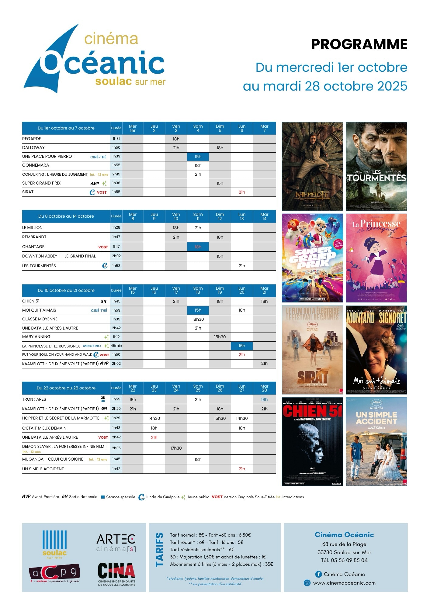 Que vous veniez en bateau, en voiture, à moto, à vélo, à pied, à la nage… le Cinéma Océanic vous accueille tous les jours au 68 Rue de la Plage à Soulac-sur-Mer