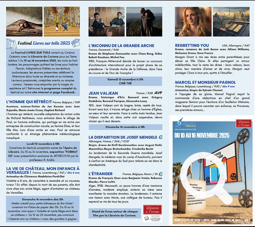 Lundi 10 novembre à 18h00 : ouverture du festival LIVRES SUR TOILE, projection suivie de l’Apéro du Libraire.